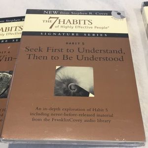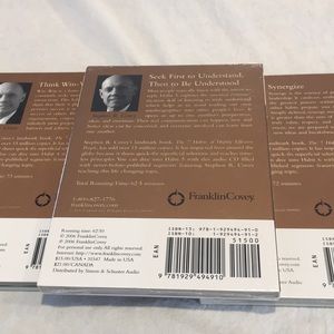 Think Win-Win opened in mint condition. Habit 5 Seek first to understand, Then to be Understood. Brand New factory sealed. Habit 6 Synergize Brand NEW factory sealed. All CDs are an in Depth exploration of each habit including never before-Released Material from the FranklinCovey audio library! Stephen R Covey!s landmark and best selling book The 7 habits of highly effective People comes to life in these Videos. Listen and learn at your own time frame & conditions. Learn from the best of the best without taking the very expensive seminars that are taught with the same program.