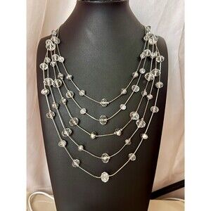New York & Co Purple and Silver Beaded Double Strand Teardrop Toggle Necklace