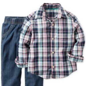 Carter's 2-pc. Long-sleeve Plaid Shirt & Jeans Set, Baby Boys 12 Months