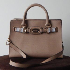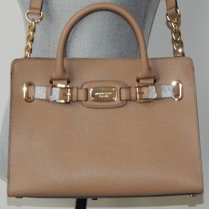 NWT MICHAEL KORS HAMILTON LEATHER EW KHAKI CHAIN SATCHEL CROSSBODY HANDBAG