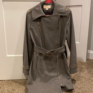 MK pea coat grey with gold hardware and belt - good condition, great coat.