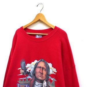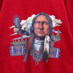 Vintage Lee Sport XL Native American Indian Tribe Man Crewneck Sweatshirt Red