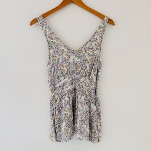 White lacelike overlay off shoulder top, as sold by Revolve. Size medium. Pom Poms lining the hem as a fun playful trim. EUC. Tularosa.