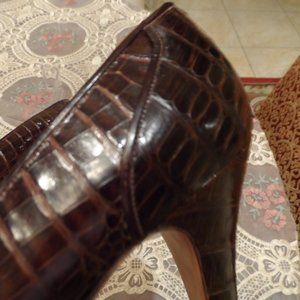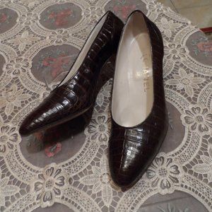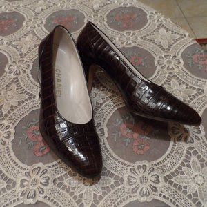 Chanel Brown Crocodile Leather Classic Heeled Pumps Size 7 1/2M