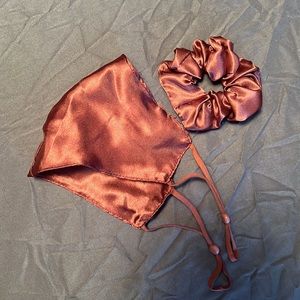 Dark Copper Satin Adjustable Mask with matching Scrunchie