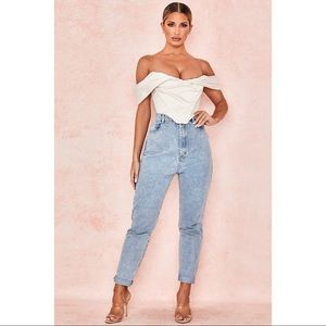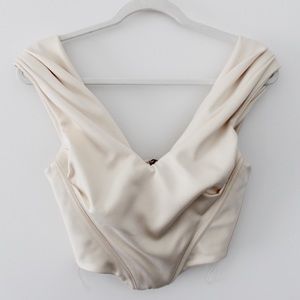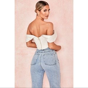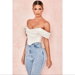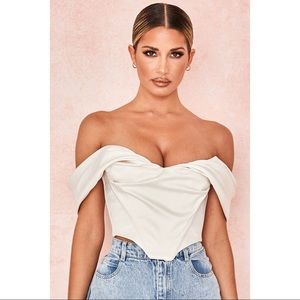 House of CB Silva Ivory Satin Draped Shoulder Corset Top