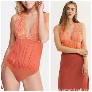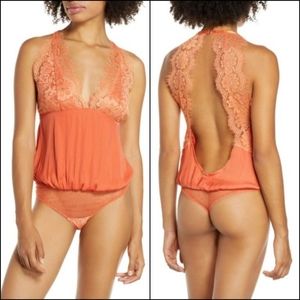 Free People Melrose Coralina Eyelash Lace Open Back Thong Bodysuit