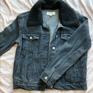 Cropped black denim jacket from PacSun Outside of collar lined with black Sherpa (still in great condition) gently used.