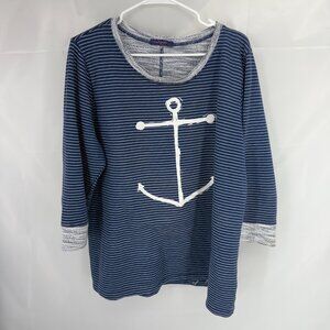 LL Bean Women's XL Navy Blue Crochet Button Front Duster Length Cardigan Long
