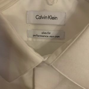 Calvin Klein Slim Fit No Iron Shirt in White. The shirt is in a size 15-151/2 size Small.