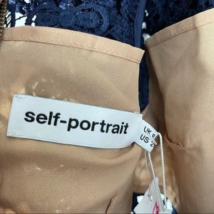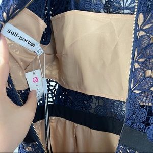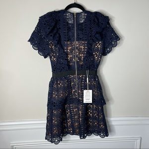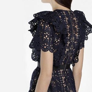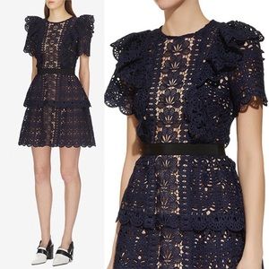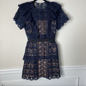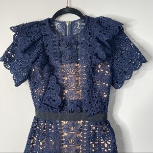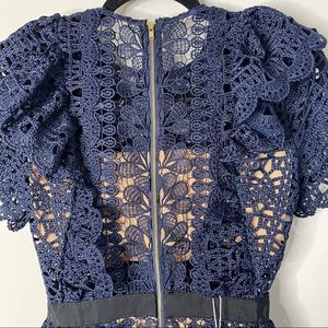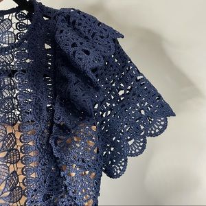 Self Portrait blue navy ruffle guipure mini cocktail dress size 2