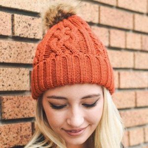 COPY - Hip Black Cable Knit Fur Pom Beanie