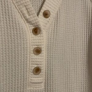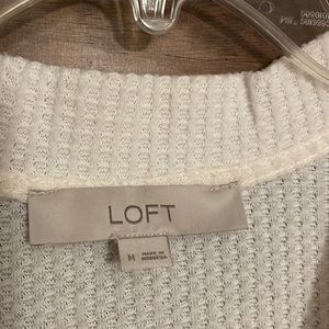LOFT Off White Cream Waffle Knit V-neck Henley Top Size M