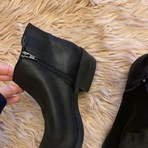 Man made fabric upper/lining - Rounded almond toe - Lightly padded footbed - Square, stacked heel with man-made outsole - Elastic side goring - Inside zipper for easy slip-on wear - Approx 1 3/4" stacked heel height - Approx 4 1/4" shaft height