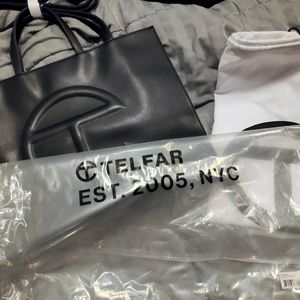 Featuring a double strap (handles and cross-body straps), embossed logo, a main compartment with magnetic snap closure, internal laptop-sized compartment with zipper closure in back and additional internal pocket in front. Made from faux leather and twill lining. Bag is packaged in a 100% cotton drawstring bag with screen-printed logo.