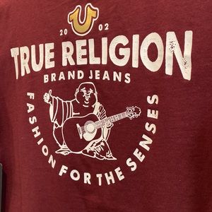 New, with tags, True Religion Women’s V neck logo tee.