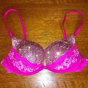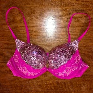 💖LIKE NEW VICTORIA SECRET CUSTOM BLING SPARKLE RHINESTONE PUSHUP PADDING 34B