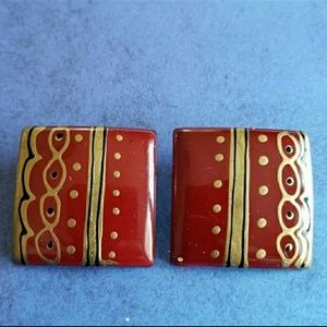 Relisted -vintage Chinese inlay clip earrings tortoiseshell