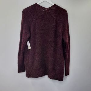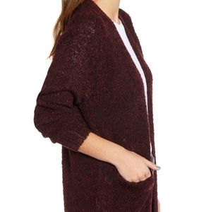 Nordstrom BP Bouclé Draped Cardigan Cozy Knit Burgundy Red Open NEW