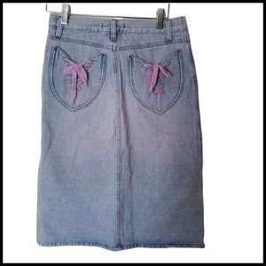 See By Chloe Denim Midi Skirt Back Pocket Ties size 4