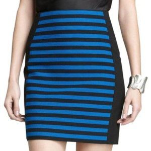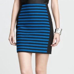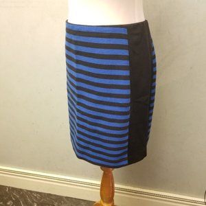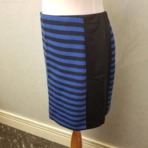 New without tags Ann Taylor Black and blue striped skirt with black solid sides back zipper with clasp. 16in waist 18in long.