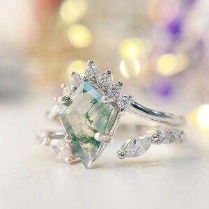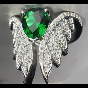 Beautiful statement wings ring. Beautiful emerald green water drop gem with small rhinestones, silver plated