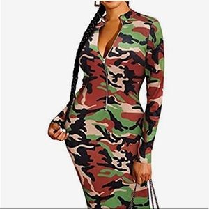 Trendy Camo Print Women's Long Sleeve Printed Zipper Neck Knit Bodycon Midi Dresses for $20 For All 3 Or Can Purchase Separately for $8 each.