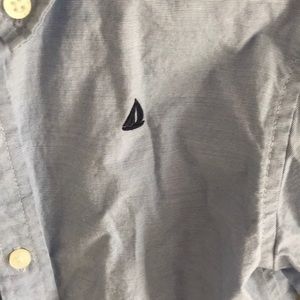 Janie and Jack light blue button down shirt. 2015 Easter collection. No pocket - blue embroidered sailboat logo and button down collar- Size 5. Excellent used condition with no visible damage from Smoke-free, Pet-free home.