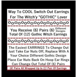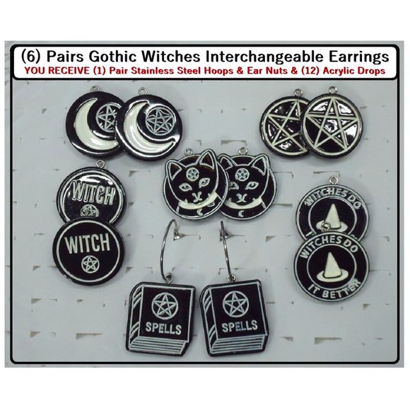 6/$20 Gothic Black&White Dark Moon Interchangeable Charm Earrings-6 Pairs in Set