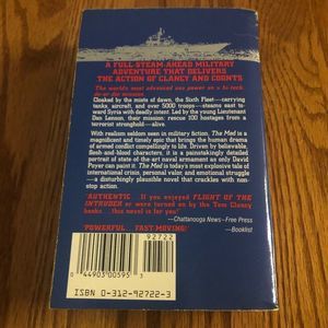 560 pages of a military adventure, The Med by David Poyer. Cover is in great condition. There is a tear on binding. Pages are in like new condition!