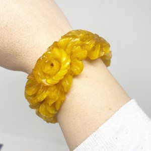Vintage Bakelite translucent butterscotch heavily flower and leaf carved bangle