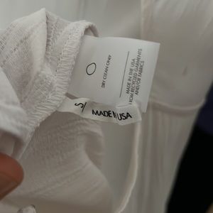 Slight yellowing at one spot on the back and interior- see photos. It’s mild yellowing and barely noticeable and the darker light yellowing is on the inside so cannot be seen while wearing