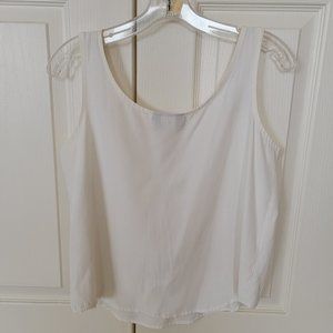 Very lightweight beautiful top. Size M Gently Used. Spot on left shoulder. Please see pictures Cream in color with black printed graphic. Slightly see through. 100% Rayon. Flat lay pit to pit is approximately 18 in. Flat lay middle to bottom is approximately 18 in.
