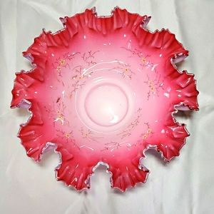 ❣HP❣Vintage Bridal Ruffle Cranberry & Milk Bowl