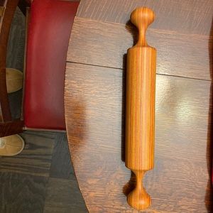 Tom Foster signed multicolor wood grain rolling pin in pristine (new) condition