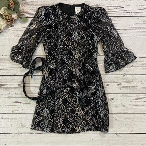 H&M The Vampire’s wife lace mini black dress NWT. Sexy . Belted . Limited edition . Bloggers favorite . Edgy . Goth . Rock . Punk . Emo . Steampunk. Size XS. Flat lay measurement pit to pit 17 inch . Arm 15 inch . Length 32 inch . Shoulder 16 inch .