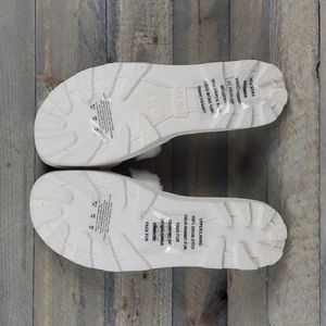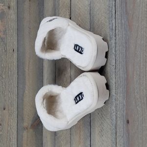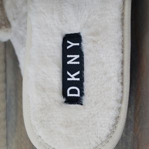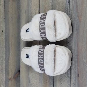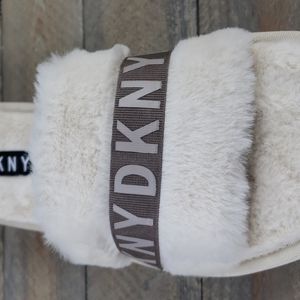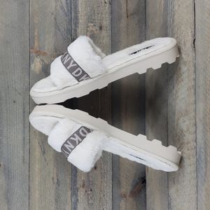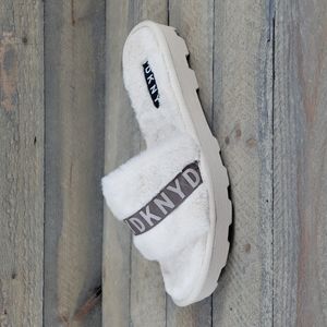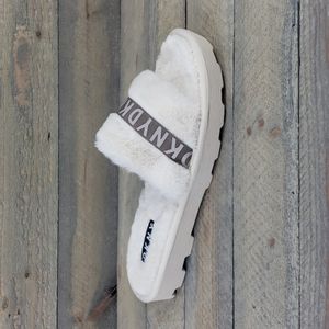 DKNY Logo Faux Fur Rabbit Women's Slides Slippers Beige