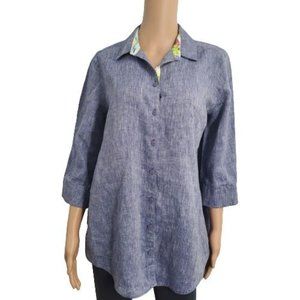 Chico's Women's No Iron 3/4 Sleeve Linen Button Front Shirt Size 0/US(4/6)