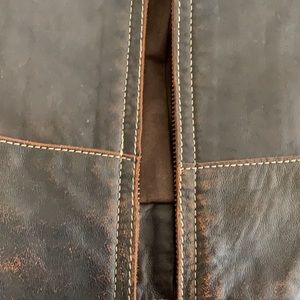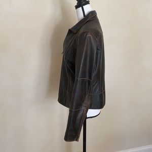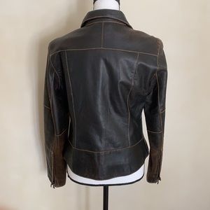 Ladie’s Weathered Leather Jacket. Soft, luxurious brown leather with stitched detailing. Zippered sleeves as even more character. Smoke free home.