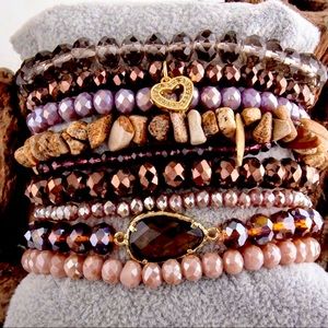 NEW 8 Darling Bracelets Multifaceted Beads Semiprecious Stones & Goldtone Charm