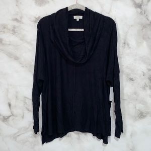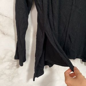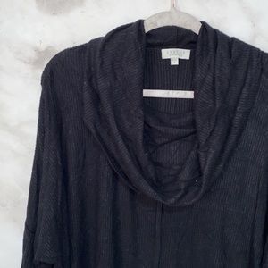 Status by Chenault Black Slit Side Rib Turtleneck Top