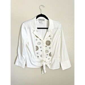 New York & Company Blouse Size XL NEW Women's Button Down Stripped Silver Shirt