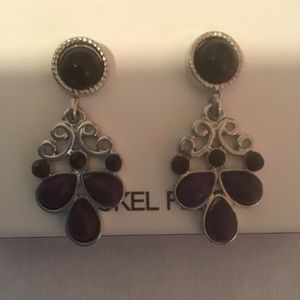 Matching pierced earrings are deep purple