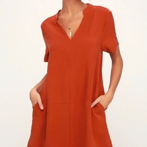 ❌SOLD❌Lulu’s Siesta Rust Orange Short Sleeve Shift Dress