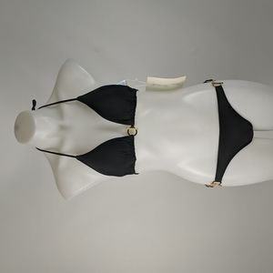 Heaven's Here Women's Bikini Size Small Black Gold Accents Halterneck String