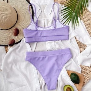 New! ✨ Lavender Purple Textured Stripe High Cut Cheeky 2 Piece Boutique Bikini