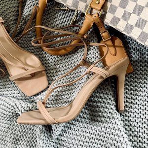 New๐ฅ Nude Thong Leg Wrap Lace Up Gladiator Sandal Square Open Toe Stiletto Heel