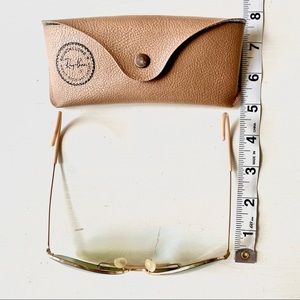 Lens is 58mm & 14mm bridge. In very good condition! Designed to resist the harsh, damaging rays. Comes with original leather case. Rubber intact at the end of arms. They have a few spots on the brass below the lenses but really not noticeable. Please see pictures. Lenses are grey/trugreen tinted.