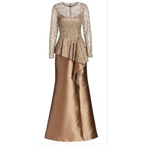 Teri Jon Lace & Gazar A-line Champagne Gown.