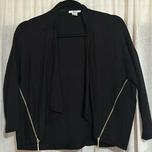NWOT. Bebe black midi length skirt. Never worn. In great condition. Great material. Gold detail in back. Slimming fit. Small slit on back as shown in pic. No snags or flaws.